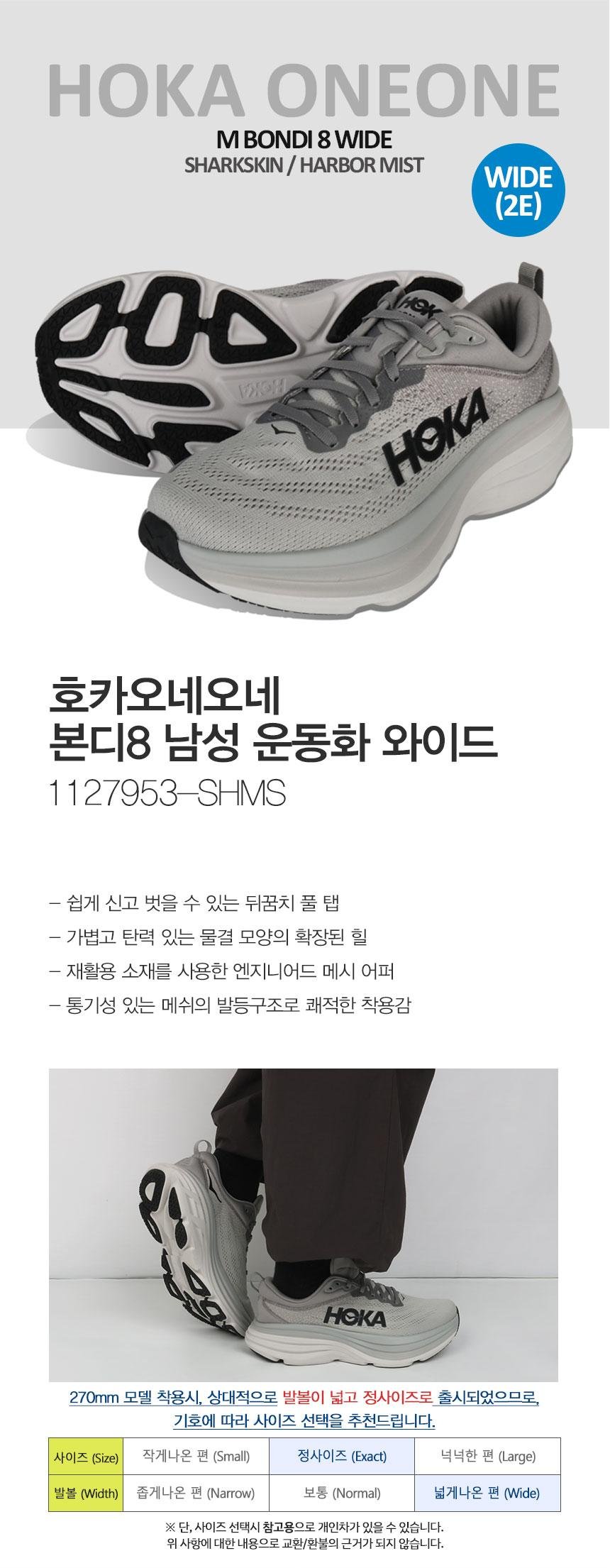 “호카오네오네 운동화 본디8 와이드 남성 샤크스킨 1127953-SHMS”의 첫 상품평을 남겨주세요 응답 취소